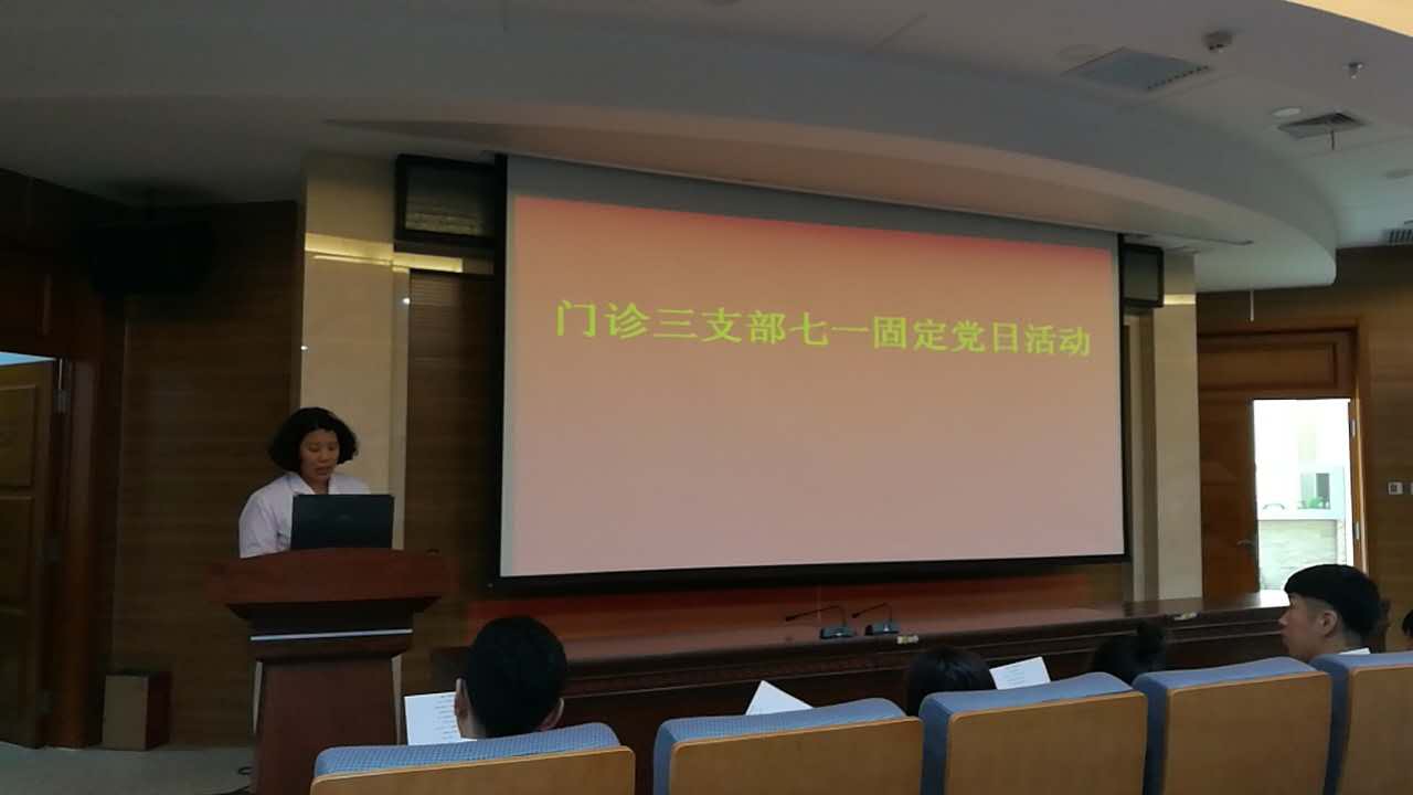 陈玉娟书记介绍了此次活动目的和意义,她说:为庆祝中国共产党建党96周年,热情讴歌伟大的党、伟大的祖国,充分展示门诊三党支部党员干部的爱国主义热情、昂扬的精神面貌,努力营造充满生机和活力的工作氛围,动员和引导广大党员干部把激发出来的爱国热情转化成为创先争优、对标赶超、踏实肯干、加快推进医院发展的实际行动,经门诊三党支部支委会研究决定此次主题党日活动举办“红歌大合唱”活动。