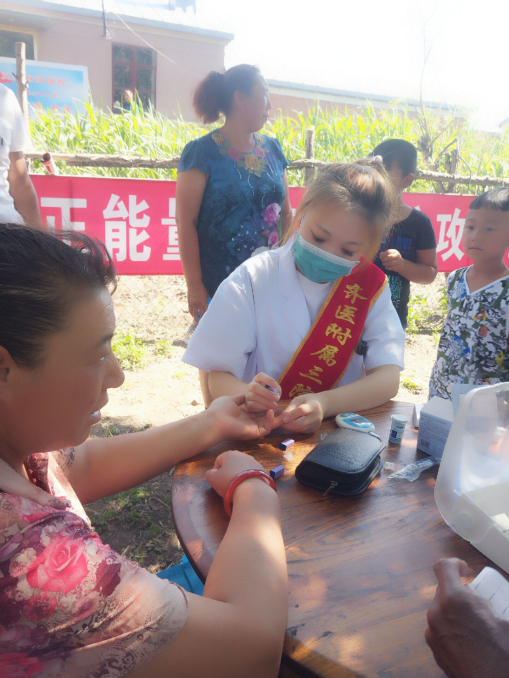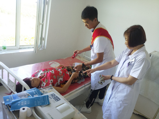 大学生社会实践队与我院专家诊疗队携带血糖仪、心电图机、超声机、血压计等设备共同为拜泉县各乡镇的居民开展预防保健宣传和诊疗活动。大学生每4人一组,每组工作2至4天,大学生为居民测量血压、血糖、查体、监测心电图以及发放宣传单和分诊等工作。就诊的老年人普遍存在血压、血糖、血脂偏高、视力障碍等现象,专家们耐心地进行诊查,根据病症给出治疗方案和饮食、生活方式等预防保健方面的建议,使广大居民了解疾病的危害,提高了对疾病的认识和健康意识。许多村民由于经济困难、医疗条件等原因,生病也不能及时就医,卫生下乡活动使这些村民的疾病足不出户就得到了救治。