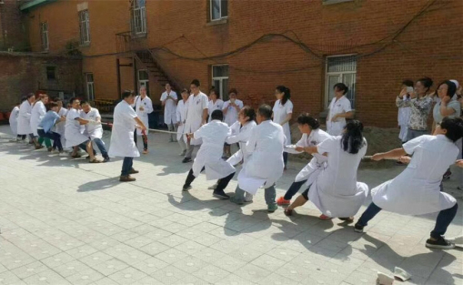 本次比赛分四队进行,分别是:厚德队、精医队、砺学队、至上队。由抽签方式两两对决,获胜的两队再进行最后的较量。比赛过程中,各参赛队员心往一处想,劲往一处使,无论是场上还是场下,气氛都异常激烈,没有比赛的同事自觉变成拉拉队,个个热情高涨,呐喊助威给比赛增添了一抹亮色,带来了一股力量。力拔山兮气盖世,狭路相逢勇者胜,最终砺学队成功夺魁。意犹未尽的队员们又进行了趣味拔河,九位男队员挑战所有女队员。三十多位女队员毫无悬念的完胜,并且没留给对手太长的时间。