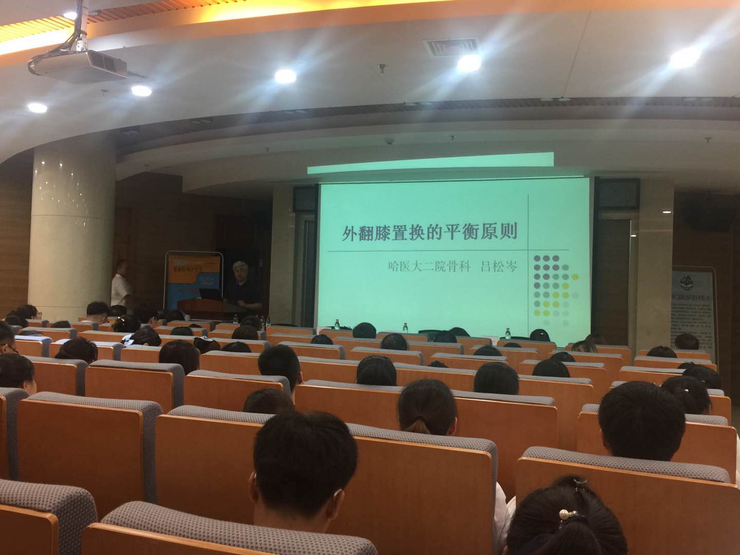 哈尔滨医科大学附属第二医院骨关节疾病微创外科、运动医学科主任,医学博士,主任医师、教授,研究生导师吕松岑教授在会上进行了《外翻膝置换的平衡原则》专题学术交流,他说:“骨性关节炎、类风湿性关节炎晚期是行全膝关节置换手术的主要指征,膝外翻畸形是其主要畸形之一,在此类患者中常存在外侧股骨髁和胫骨平台部分缺损、塌陷,外侧关节囊和韧带挛缩,内侧副韧带松弛。因此术前必须认真评估患者软组织状况,术中进行正确的截骨和适当的软组织平衡,术后做好针对性的康复训练,这对恢复膝关节正常的力线获得膝关节稳定,延缓假体的磨损和松动具有十分重要的意义。”