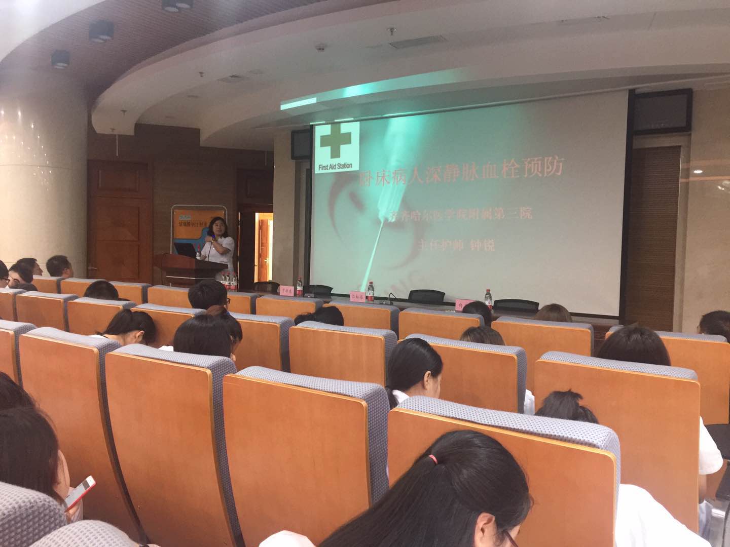 会上,我院骨外一科主任白玉江教授,骨外五科主任孙文才教授、主任护师钟锐分别对《富血小板血浆技术在骨外科的应用》、《经皮钉棒技术在胸腰段骨折治疗中的临床应用》、《骨关节炎治疗进展》、《卧床病人深静脉血栓预防》进行了讲解。
