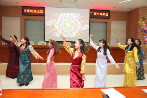 典礼结束后,医院领导、老师和同学们一同观看了“迎新生、庆教师节师生联欢会”,同学们各展所长,尽情施展才艺!有藏族同学们带来曼妙的藏族舞蹈、展现异域风情的印度舞蹈、幽默滑稽的方言版朗诵“我的滑板鞋”、扣人心弦的横笛独奏“My heart will go on”、动听的男女弹唱以及精彩的脱口秀表演,将现场气氛带向高潮。联欢会在《骄傲的少年》的歌声中结束。至此,2014级新同学将带着领导、老师的希望和祝福开启在附属三院新的学习生活。