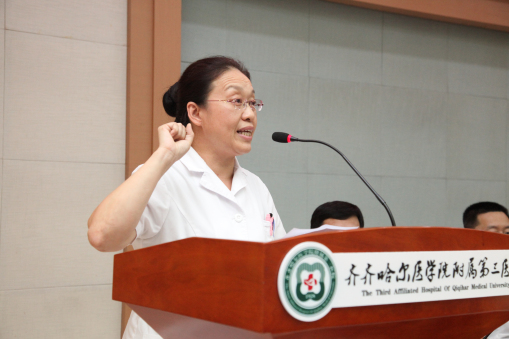优秀教师代表、儿科教研室主任张丽文老师代表全体教师发言
