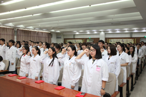 优秀教师代表、儿科教研室主任张丽文老师代表全体教师发言:志愿用尽毕生所学,为学生们传道、授业、解惑,引领同学们探索医学的真谛。希望同学们不畏艰难、努力学习、克服万难!真正成为一名值得患者以性命相托的好医生!并在张丽文老师的带领下,全体学生进行了医学生誓词宣誓。