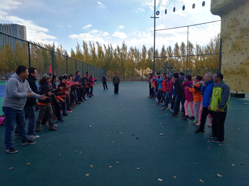 10月14日早上,在院党委书记李玉雪、院纪委书记和工会主席刘晖的带领下,参加拓展训练的45名同志身着整齐的服装统一出发,在培训师的指导下,大家很快进入了状态,活动开始紧张有序地进行。
