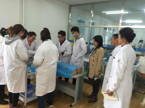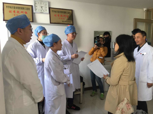 本次检查采取分组实地检查的方式:第一组实训及病房实地检查:1、李晓华书记,宁景志副院长陪同张晓杰副院长参观我院临床技能培训中心及口腔实训中心。2、张晓杰副院长亲自到病房检查出科考试,从学生候考,到病房进行问诊查体整个过程,张院长全程参与,并实时进行点评指导。第二组材料检查组,由张淑丽处长、李静平处长及张春庆副处长组成的材料检查组,分别对出科考试文件流程、实习手册、学生病例书写、教学查房、病例讨论、小讲座等材料逐一进行查阅,并针对其中各项细节内容给予意见及指导。
