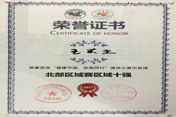 为响应党的十八届五中全会提出的“坚持以基层为重点的医改方向”的号召,提高基层医疗卫生服务能力,建设健康中国的宏伟目标,11月11日“健康中国,你我同行”演讲比赛北部赛区在吉林大学第一医院正式拉开帷幕,来自黑龙江、吉林、辽宁、内蒙古自治区的15名选手参加本次比赛。经过激烈角逐,我院检验科王兴业以94.6的高分取得了第一名的好成绩,成功晋级全国决赛并获得北部区域赛十强荣誉证书。