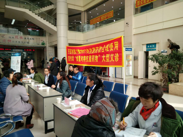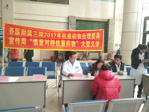 11月17日,为迎接2017年“抗菌药物合理使用宣传周”的来临,积极宣传抗菌药物合理使用知识,在我院医务科、临床药学、医疗服务中心等科室的组织下,由我院多科室专家和药学专家组成义诊团队,举办了以“慎重对待抗菌药物”为主题的宣传活动,在附属三院门诊举行大型免费义诊活动。