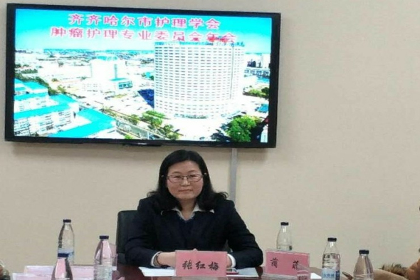 齐齐哈尔市肿瘤专业委员会主任委员我院肿瘤内二科护士长张红梅讲话