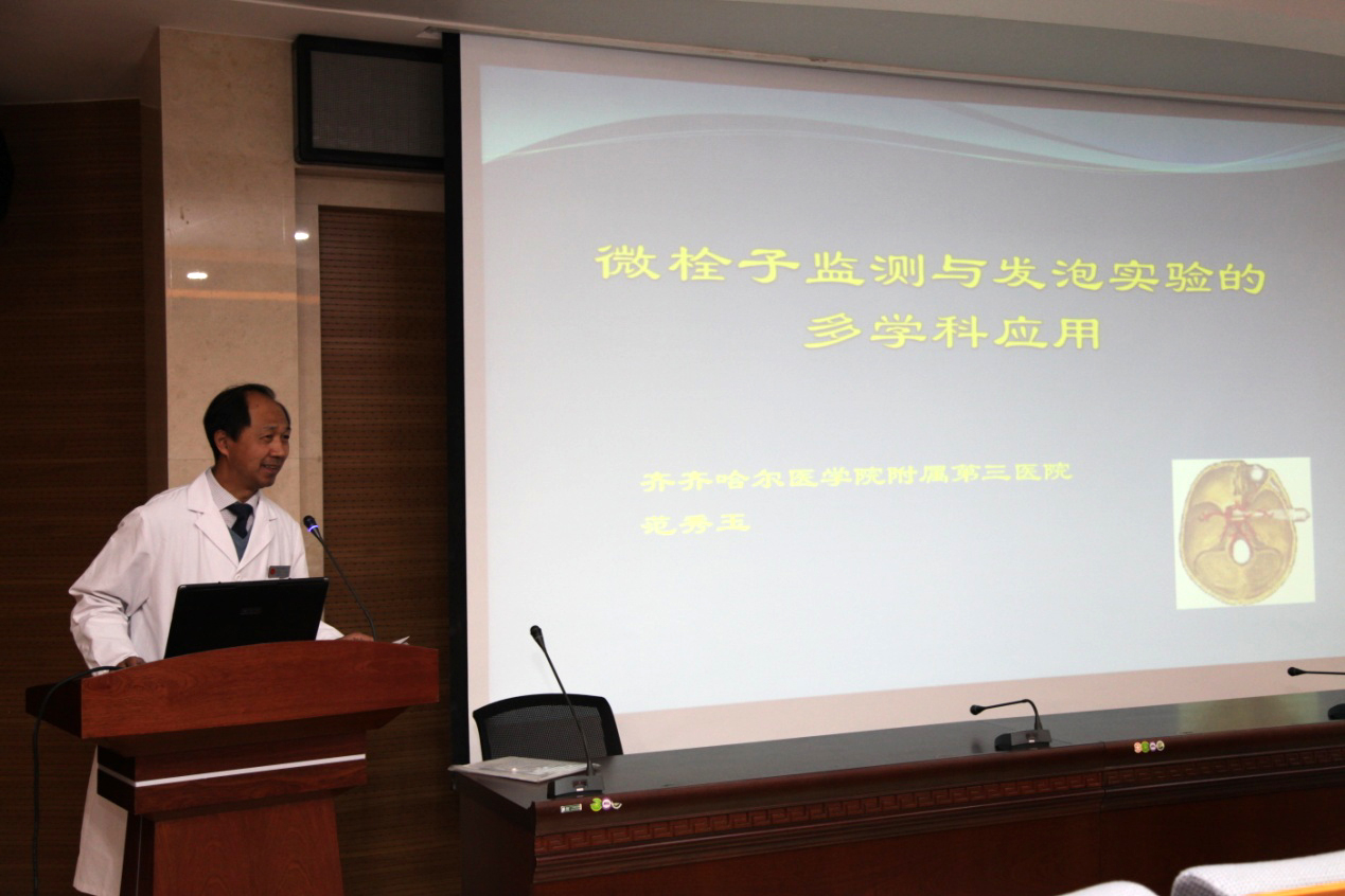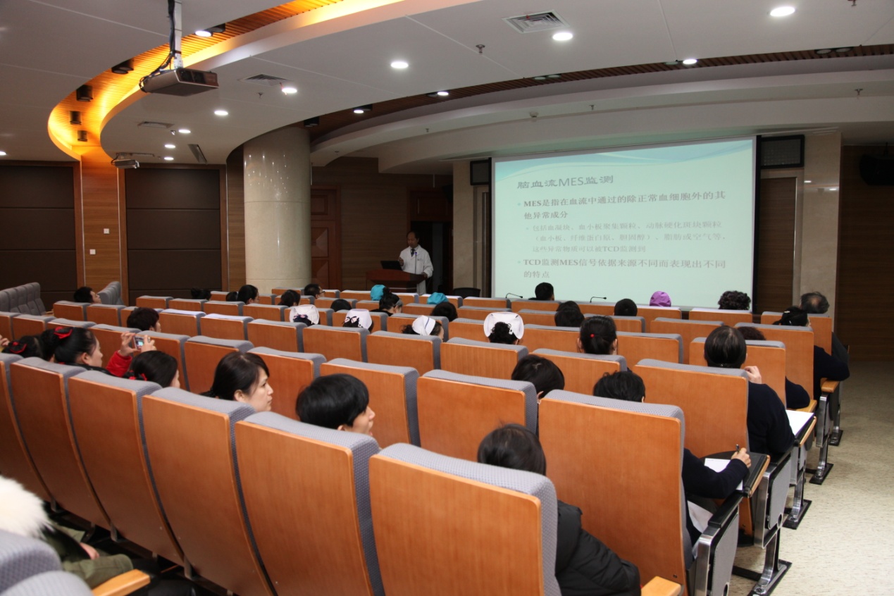 12月15日下午,由附属三院电生理科承办的市级继续教育项目《微栓子监测及发泡实验的多学科应用暨神经电生理新进展》专题学术讲座在附属三院综合楼3楼会议室举行。来自我市第一医院、一厂医院、泰来县医院、富裕县医院等多家医院的专家学者及附属三院各专业学科的医务工作者近100余人参加了本次学术会议。本次会议由附属三院电生理科主任范秀玉教授主讲,授课内容包括:应用经颅多普勒技术开展微栓子监测的临床多学科应用;应用经颅多普勒技术开展发泡实验,筛查隐源性卒中病因。范秀玉教授结合国内外文献资料,通过典型病例分析及自身丰富的临床经验,为参会代表献上了一场丰盛的学术盛宴,受到与会专家学者的高度关注。会后部分医院的专家学者参观了我院电生理科,并针对本专业关注话题进行了交流。