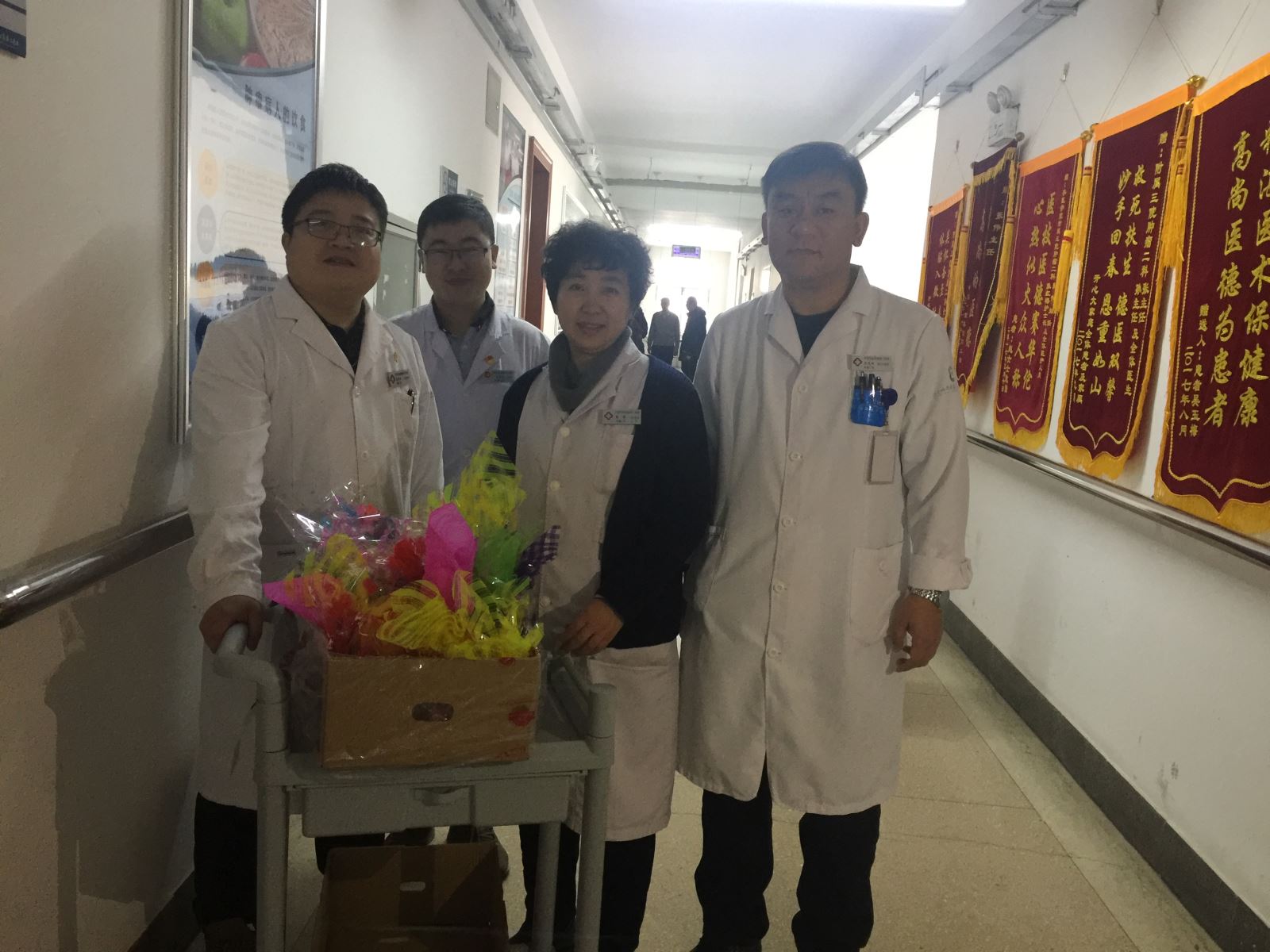 肿瘤二病房医护人员将满载爱心的礼物送到患者床前