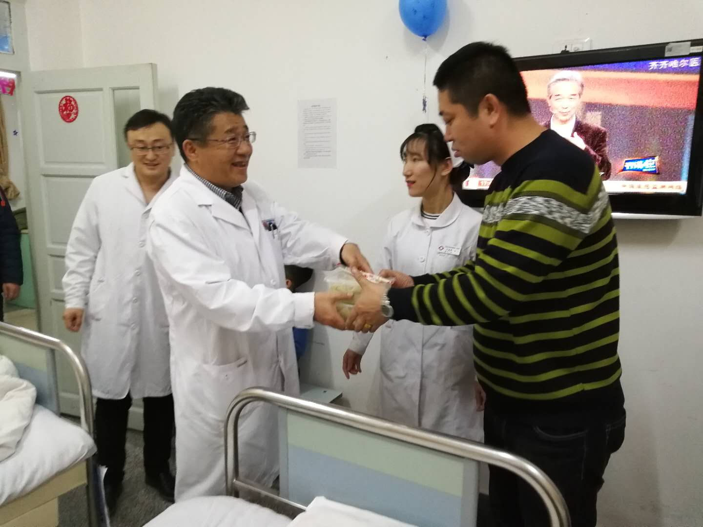 “春临大地百花艳,节至人间万象新”。2月15日,在这万家灯火,阖家团圆的除夕夜,我院领导班子带领医院各职能部门负责人组成7个慰问小组,分别探望住院综合楼、门诊综合楼、后勤、肿瘤分院、东区的住院患者和坚守在各自岗位上的一线职工,亲手将热腾腾的饺子送他们手中,并送上最诚挚的问候和新春的祝福。
