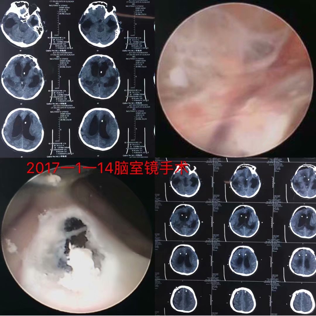 第一例脑室镜颅内感染脑室灌洗术+透明隔造瘘术影像图片