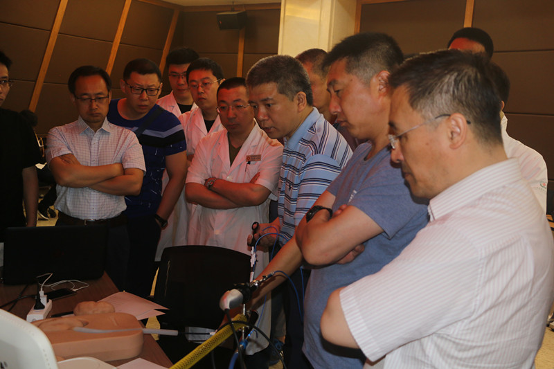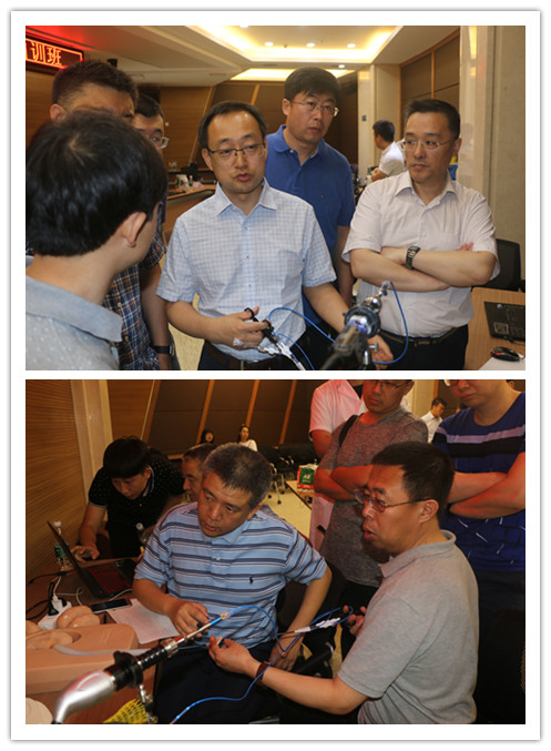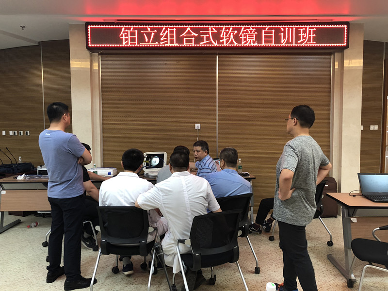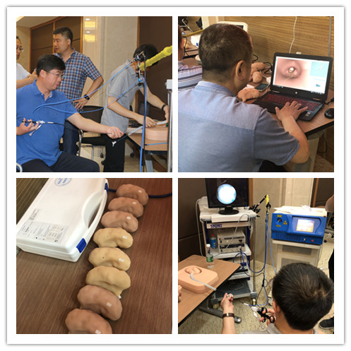 据了解,本次学术活动的另一环节,是在附属三院综合楼三楼会议室举办的铂立组合式软镜自训班。培训班采用与北大国际医院张弋教授合作的弋创软镜训练法:虚拟软镜辅助下的3D打印模型库训练。培训现场,学员被分成两组,在虚拟软镜的辅助下,在4个半小时的时间内探查14颗不同的肾病例,最后在水环境下独立找到结石并熟悉钬激光粉末化碎石。学员们争先恐后的练习,都想在有限的时间内让自己得到更多的锻炼。虚拟练习后,专家们还为学员进行了手术演示,包括3台输尿管软镜碎石取石术、1台可视穿刺下碎石取石术,让学员们切身感受实践的效果。经过这样的软镜探查、激光碎石强化训练以及实地感受,学员们的水平都得到大幅度提升,他们表示,通过老师手把手的教学和自身操作,很快掌握了该项技术方法,回去即能很好的开展工作。