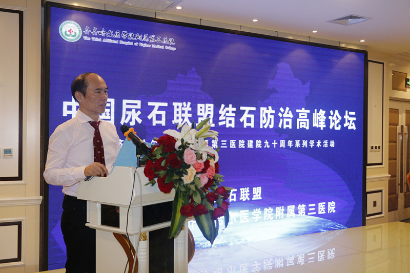 大会主席、中华医学会泌尿外科学分会泌尿结石学组组长、国际尿石联盟主席叶章群教授代表尿石联盟对会议的召开及附属三院90周年华诞表示祝贺,对附属三院的辛苦协办表示感谢。他说:“目前,泌尿结石的发病率越来越高,严重威胁患者的身体健康,结石的防治非常重要。”他希望通过这次学术会议,能够让国内外顶级专家把新的治疗结石技术进一步推广和应用。各位从事泌尿学工作的医生能真正从患者的病因进行诊断,采用针对性的方式,把结石当做疾病,重视对结石患者后续的防治工作。他表示,今后还会多关注东三省地区的结石防治情况,积极与各位专家学者共同交流、探讨,携手共进,把结石防治工作做好。