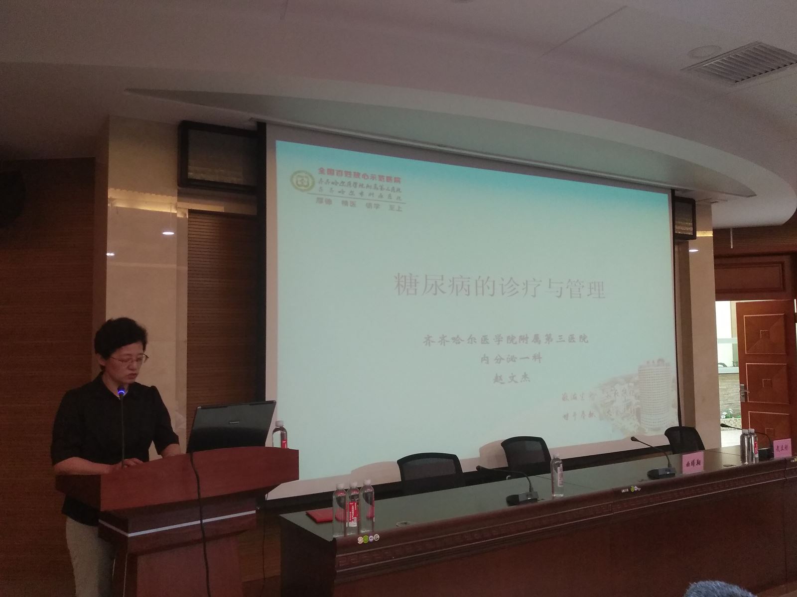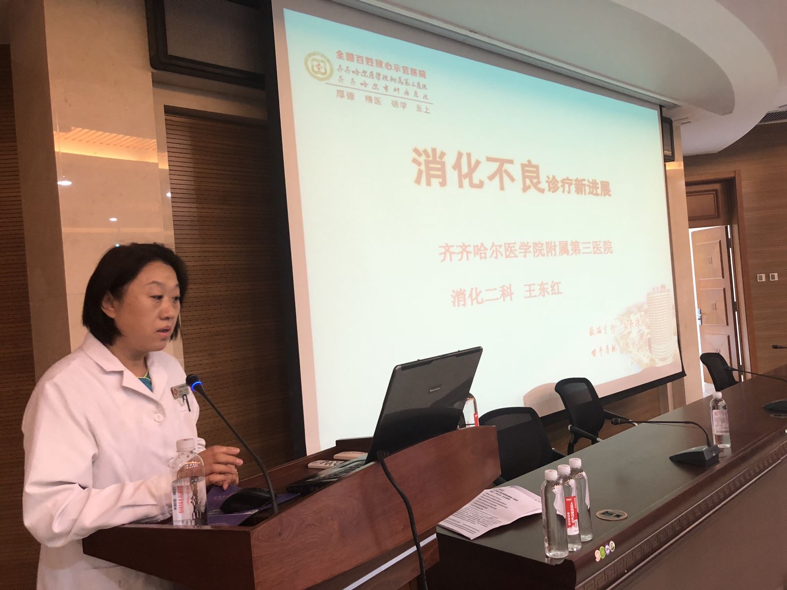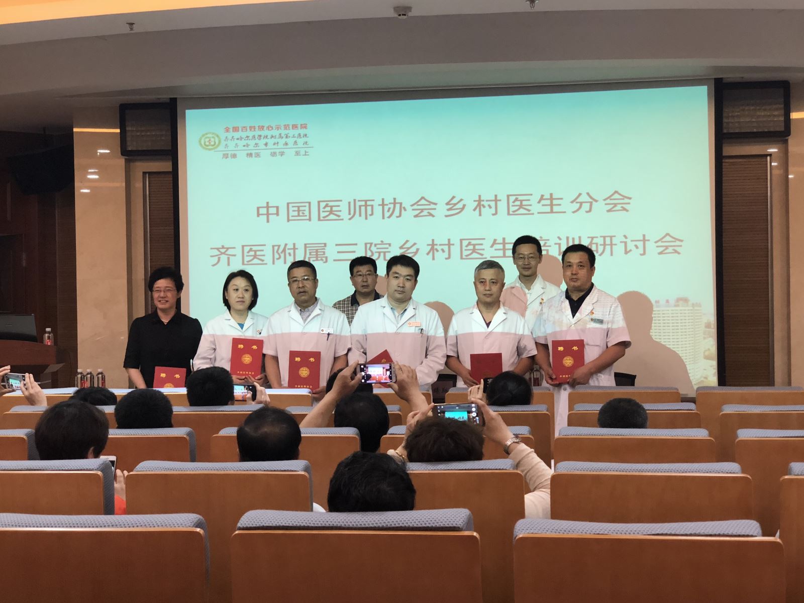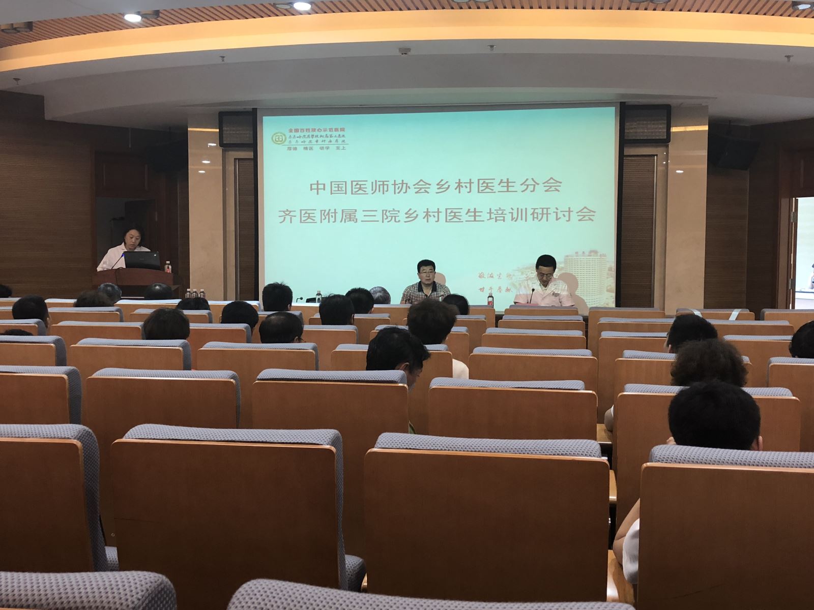 我院2017年12月被确定为中国医师协会乡村医生分会黑龙江省首家、齐齐哈尔市唯一一家地市级乡村医生培训中心,承担了齐齐哈尔市基层乡村医生培训的重要工作。2018年6月8日13时,本年度首期乡村医生培训研讨会在我院住院综合楼三楼会议室召开,市卫计委基层科科长曲曦翔、我院副院长武立刚出席会议,来自各基层医疗机构同仁和县区的近百名乡村医生及我院16、17级住院医师参加会议,会议由培训教师我院消化二科主任王东红主持。
