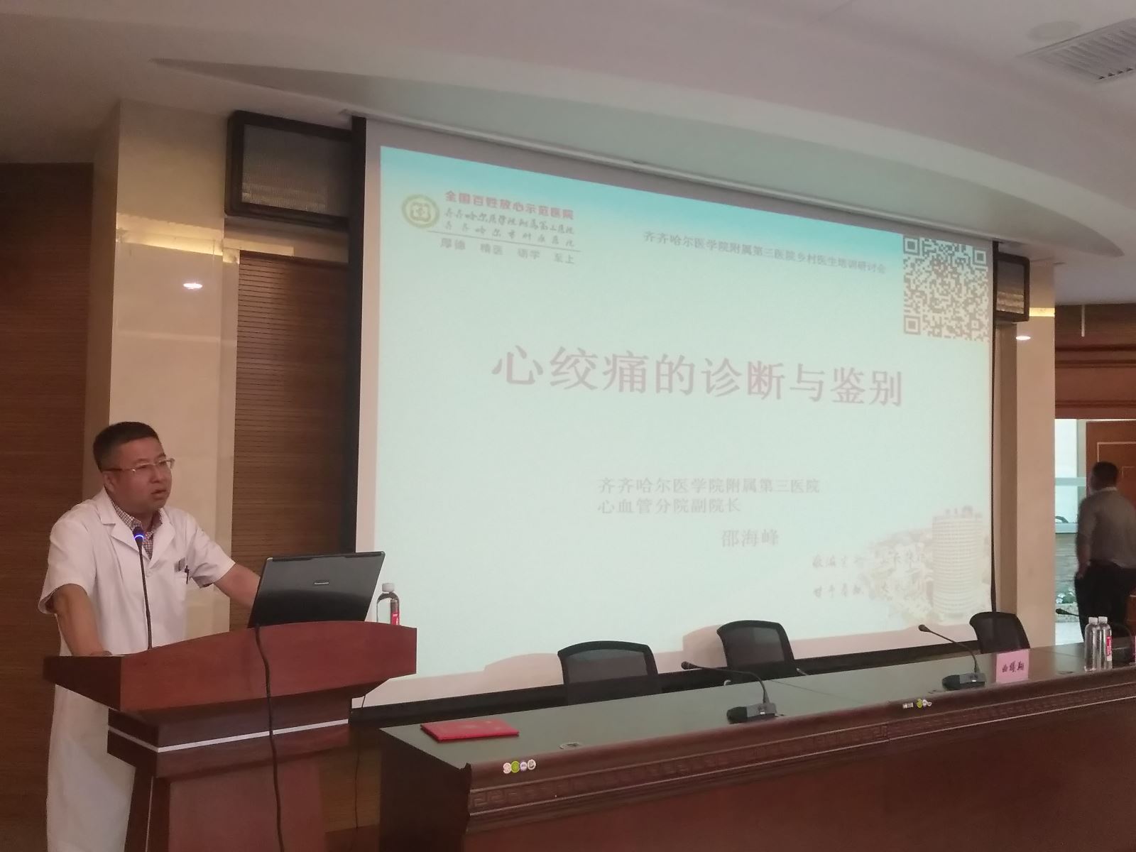 我院副院长武立刚在致辞中说:“今年是我院建院九十周年,九十年来我院励精图治,现已完全实现了作为齐齐哈尔医学院赋予我院成为附属医院中的龙头和旗舰医院的要求和构想,我们也完全实现了成为齐齐哈尔市大型三级甲等医院引领者的华丽转身。今年年初,我院经过与中国医师协会的密切沟通,正式确认了今年的培训任务安排,此次培训任务被我院列为建院九十周年的系列活动之一,此后还将采取集中培训和深入基层医疗机构上门培训的方式对接市内的各社区医疗服务中心及外县区的乡镇卫生院等基层医疗机构,进而更深入更高效地解决基层医生参加培训难的问题,从根本上提高基层医生及医疗机构的诊疗能力。”