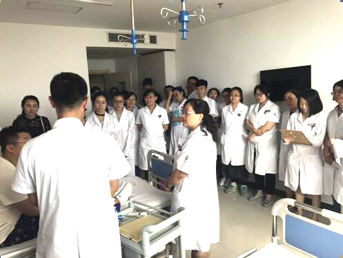 仲夏6月,硕果累累,2014级学生怀着神圣的医者梦想在各自的岗位实习,大五实习是将学生理论知识与临床实践完美结合的过程,而教学查房是实习中尤为重要的环节,教学查房不但可以解决理论与实践相结合的问题,还能够加深学生对三基知识的理解和掌握,培养医学生熟悉临床工作基本程序,掌握问诊、查体、辅助检查及诊断治疗疾病的基本技能,是培养缜密的临床思维的重要手段和有效方法。