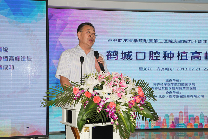 7月21日8时,由齐齐哈尔医学院口腔医学院、附属三院主办的鹤城口腔种植高峰论坛暨齐齐哈尔医学院附属第三医院建院90周年系列学术活动在齐齐哈尔市和美酒店四楼会议厅盛大启幕。大会邀请主任医师、博士生导师、教授、解放军总医院口腔医学中心主任刘洪臣教授、医学博士、齿学博士、同济大学二级教授、主任医师、博士生导师王佐林教授、中国医学科学院北京协和医院口腔种植中心主任、首席专家宿玉成教授、医学博士、教授、博士研究生导师、吉林大学口腔医学院院长周延民教授、博士、主任医师、教授、博士生导师、福建医科大学口腔医学院及附属口腔医院院长陈江教授、教授、主任医师、口腔医学博士、硕士研究生导师、中国医科大学附属口腔医院种植中心主任邓春富教授等国内口腔种植届的学术权威及东三省口腔专家、同仁汇聚鹤城。齐齐哈尔医学院副院长丛明宇出席会议,口腔医学院党总支书记李晓华主持会议。