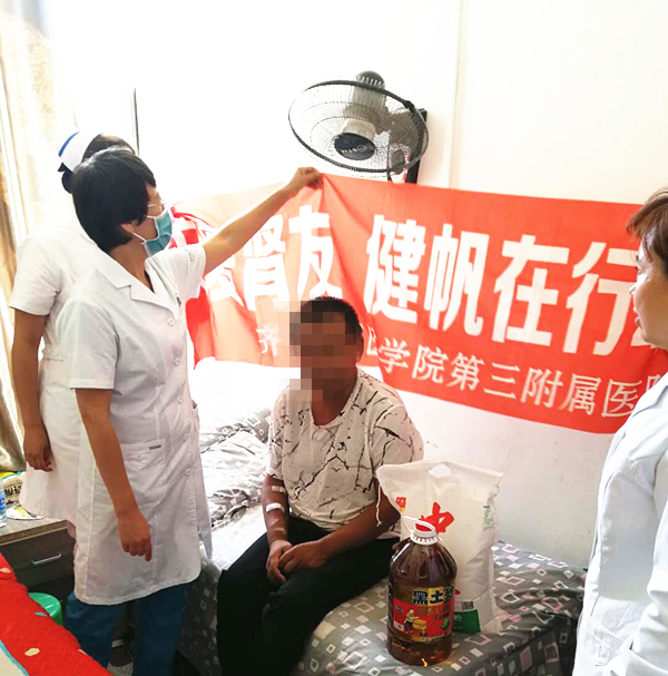 吕兴龙也表示一定要积极接受治疗。患者全家对科室工作人员的到来表示感谢。科室领导始终牵挂着透析患者的生活和健康状况,对每个患者都做到心里有数,透析室的医务人员对患者细心耐心的照顾,患者们都表示在附属三院透析,非常放心,能体会到家人般的温暖。