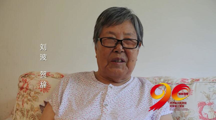 曾任医院副院长兼党小组负责人,红色经典小说《林海雪原》作者曲波的夫人、《林海雪原》中小白鸽的原型——刘波,特别录制了祝福视频,对附属三院90华诞表达祝贺之情,并勉励全院职工再创辉煌。