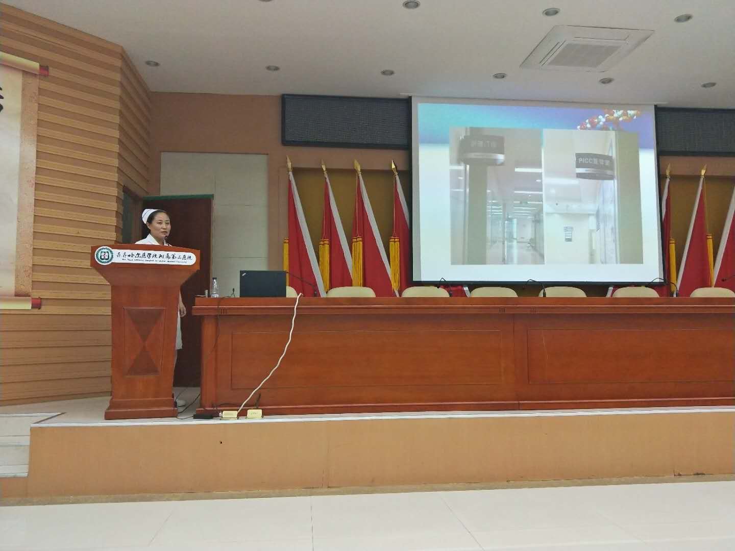 静疗小组组长、呼吸内三科护士长杨丽侠培训的内容是《PICC置管后的维护及并发症的护理》,杨丽侠从PICC置管的适应症和禁忌症、置管过程、术后换药、并发症的护理等方面进行讲解,图文并茂,深入浅出,列举临床实例,对日常PICC的维护等具体指导和解惑。
