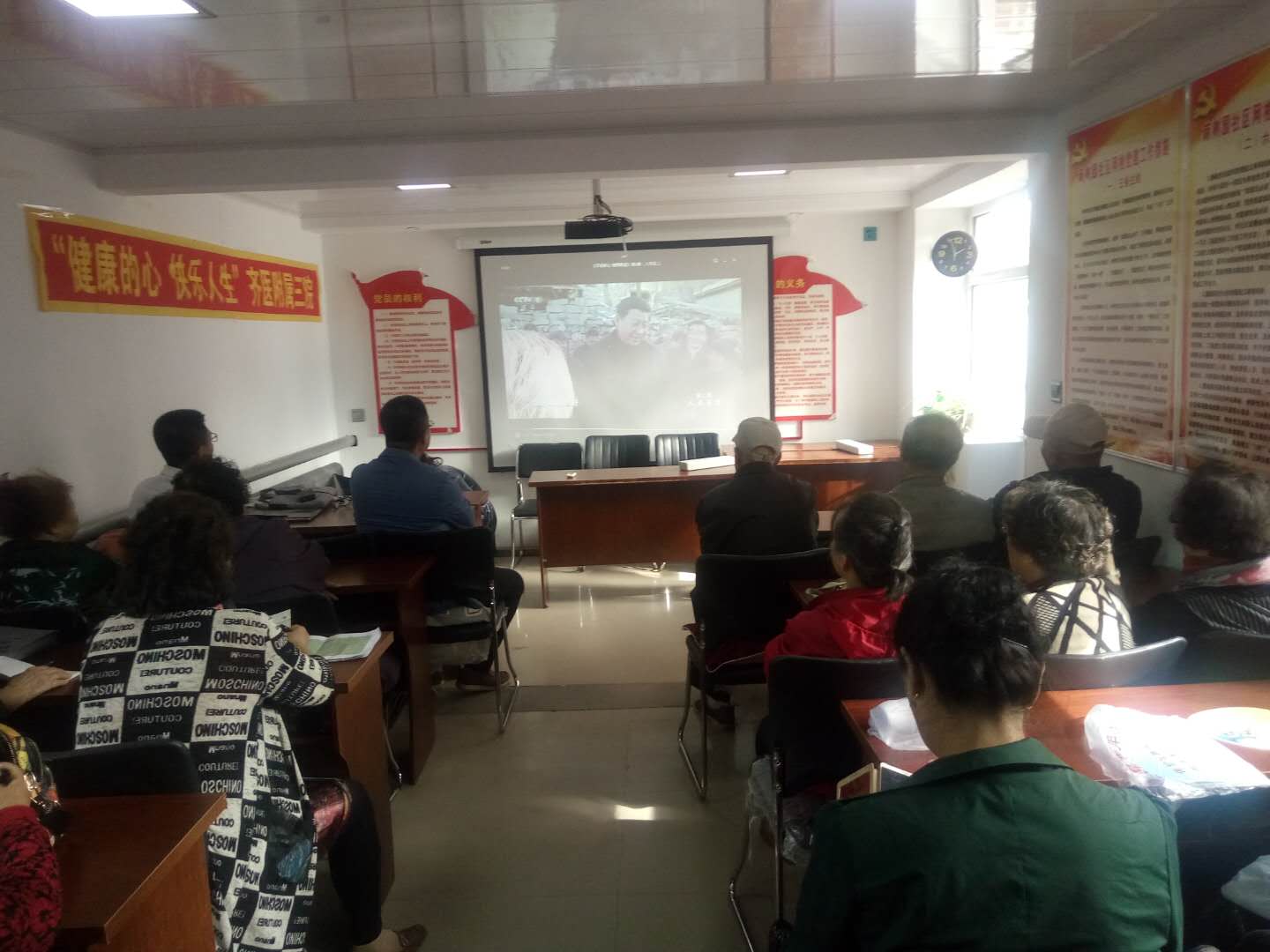 活动开始,社区的党员、支部书记、居民观看了《不忘初心 继续前进》专题节目,该节目以“向榜样看齐、做合格党员”为主线,运用了典型访谈、先进事迹再现等丰富形式,生动展现了中国共产党人身上所秉承着的坚定理想信念,彰显了共产党员在平凡的生活中不平凡的事迹。