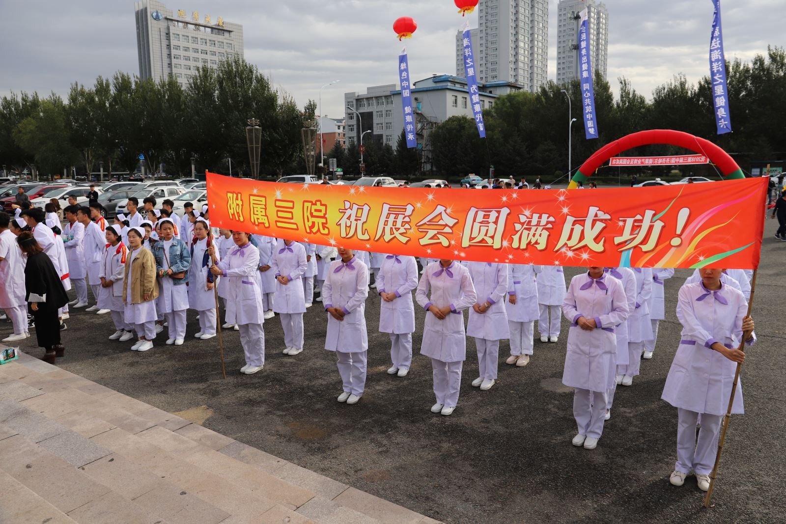 整齐划一的护理队伍参加健康产业博览会开幕式