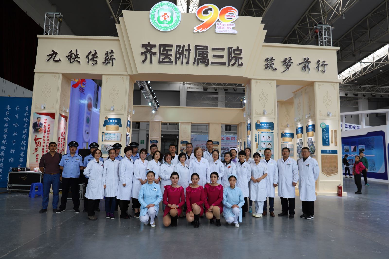 此次参展附属三院展厅设计以“九秩传薪,筑梦前行,不忘初心,牢记使命”为主题,以医院90年发展回顾为主线,记录了附属三院全心全意为人民服务的九十载闪光足迹,以及医教研等方面取得的优异成绩。展厅共分4个部分,分别为院史展区、专家义诊区、健康宣教区、免费体验区。多项惠民举措在博览会期间华丽登场,与市民互动,宣传全民健康理念,方便市民选择健康服务,为博览会增添健康元素,与鹤城市民共同开启健康之门。