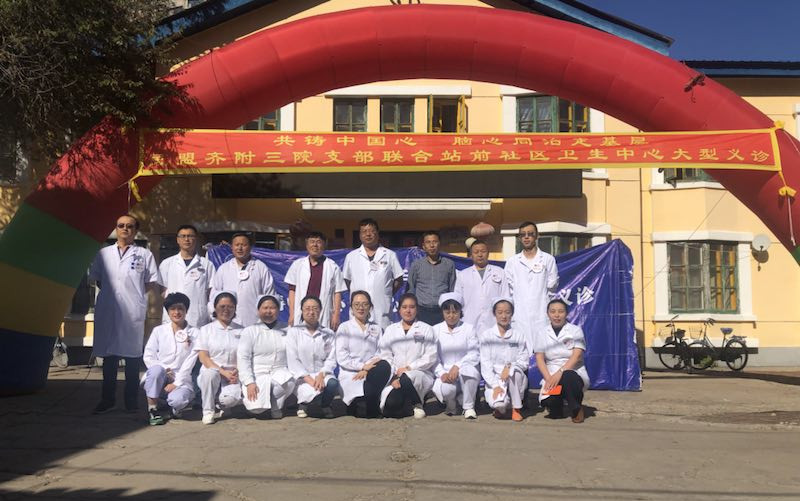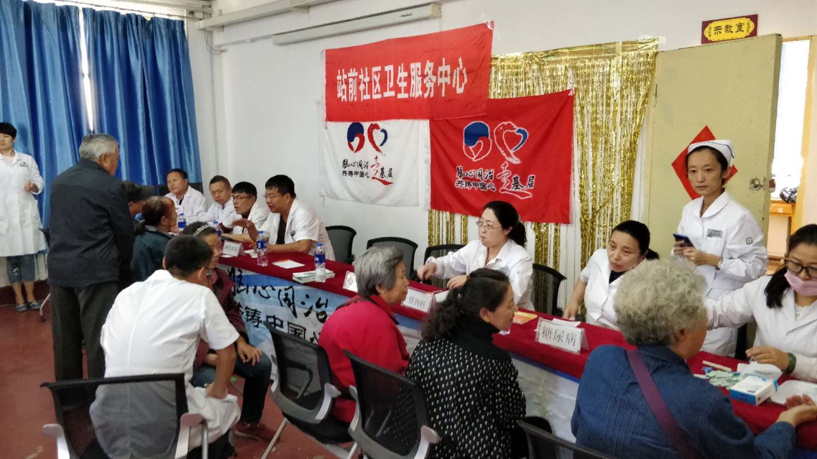 9月17日,民盟附属三院支部联合站前社区卫生中心举办大型义诊活动,民盟附属三院支部主委蔡庆斌携民盟成员一行15人参与活动。活动选派了口腔科、中医科、神经内科、肛肠科、肾内科、内分泌科主任及医护人员为站前社区百姓提供义诊服务并免费发放相关药物。