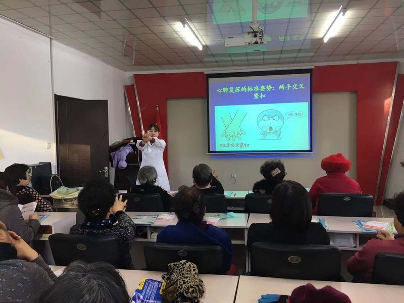 医生智连云分别对,急性胸痛的症状、及时拨打120的重要性及心肺复苏的基本技能向居民讲解并现场示范。医生梁曦就关注健康生活方式、远离高血压及合理膳食向居民进行宣教。专家们精彩的讲解获得居民们热烈的掌声,居民们一边认真聆听,一边用手机拍摄下来作为保健学习资料。