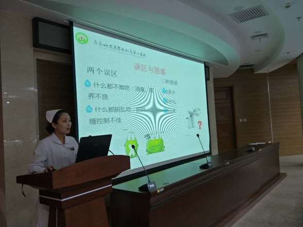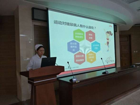 糖尿病专科汇报讲座由内分泌一科王霖、内分泌二科李洋、内分泌三科王洋3位糖尿病专科护士分别做《血糖监测技术》《糖尿病管理五驾马车之运动篇》《糖尿病健康宣教》的讲座,她们从糖尿病患者血糖监测的标准方法、胰岛素及血糖试纸保存、测量结果分析等方面进行分享,特别是在对糖尿病患者健康宣教方面,以“五驾马车”做生动比喻,内容生动形象,引人入胜。