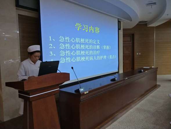 心血管病专科汇报由心血管专科护士张梅做《急性心肌梗死的护理》讲座,将急性心梗患者的临床表现、护理常规和介入治疗的护理进行介绍,她强调术后观察的重要性,时间就是心肌细胞,掌握丰富的专业知识是同时间赛跑的助力器。