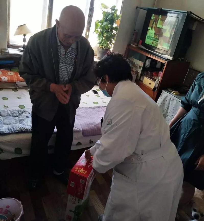 义诊结束后,站前街道社区卫生服务中心的医务人员携带礼品走进居民家中,探望辖区内的孤寡老人,为老人普及健康知识的同时也提前送去节日的祝福。