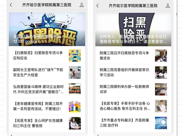 医院微信公众号持续推送扫黑除恶专项斗争工作动态及相关知识