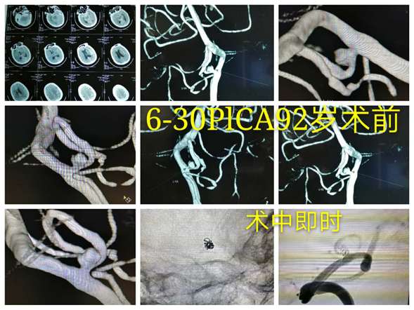 经过多学科会诊,反复讨论,决定急诊行介入栓塞手术。6月30日,在麻醉科、介入科密切配合下,手术成功,复查造影动脉瘤栓塞完好,小脑后下动脉血流通畅,术后患者清醒,现已可下地活动。
