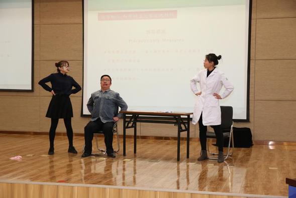 省健康科普知识竞赛省级复赛上我院三位队员进行健康科普展示