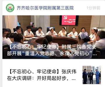 利用医院官方网站、微信公众号宣传主题教育活动