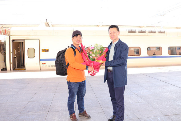 10月6日,我院援疆医生麻醉科主治医师高峰圆满完成援疆任务凯旋归来,副院长武立刚、医务科科长杨钰到车站迎接。