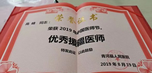 据了解,今年5月,我院选派高峰远赴新疆青河县人民医院开展对口支援工作,在援疆期间,高峰潜心钻研医疗业务,发挥专业特长,做好“传帮带”,精心为患者服务,接诊患者200余名,多次参加急诊手术和基层义诊活动,为当地提供医疗技术的支持。在完成好日常工作的同时,毫无保留的将他多年的临床经验传授给当地医生,加班加点工作,时常深夜才结束。值班室条件特别艰苦,只能在地上休息,这些困难他都克服了。他的努力付出赢得了新疆青河县人民医院领导、同事和人民群众的一致称赞,被评为优秀援疆医师。一次援疆,一生铭记。高峰表示,能够为新疆的健康卫生事业做一点实实在在的工作,为当地群众奉献自己的一份力量,感到无比欣慰。