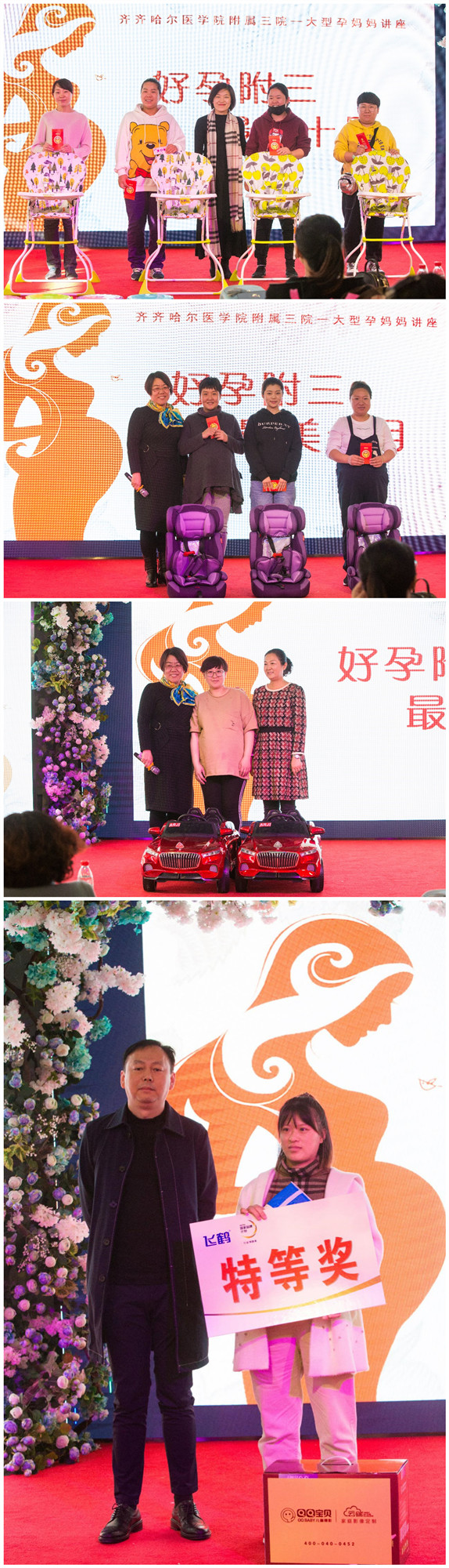 现场抽奖并与获得奖项的孕妈及家属合影
