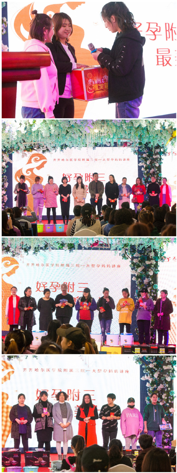 10月11日下午,我院产科在齐齐哈尔汇都酒店举办了第二届“好孕附三 最美十月”大型孕校活动,黑龙江优生优育齐齐哈尔站负责人杨丹丹、我院新生儿科主任杜龙、新生儿科护士长张帆出席本次活动,200余名孕妈及家属参加活动。