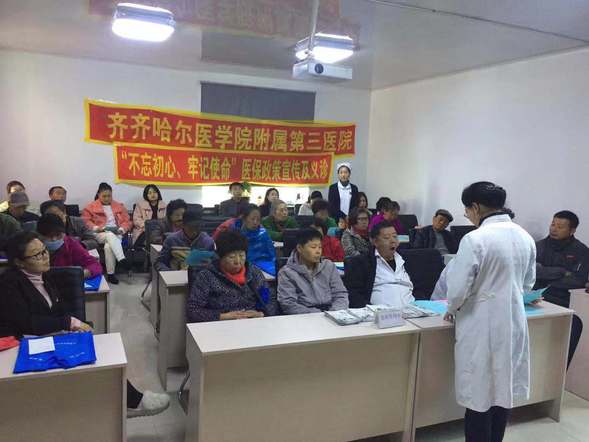 10月14日下午,在“不忘初心,牢记使命”主题教育过程中,我院联合三党支部、外科一党支部、外科二党支部、外科五支党部、内科三党支部、肿瘤党支部积极组织党员医务工作者到铁锋区北居宅劳动社区服务中心开展医保政策宣讲及义诊主题活动。