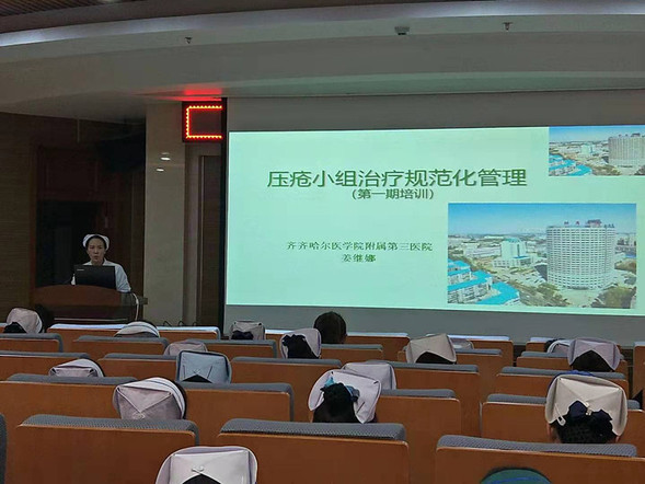 14时,在我院住院综合楼三楼会议室举办了学术讲座和压疮小组工作会议。学术讲座由我院护理部副主任马琳主持。通过视频直播的形式,由中华护理学会伤口造口专委会副主任委员吴玲老师进行题为《压力性损伤的预防管理与实践经验分享》的讲座,吴老师从压力性损伤的现状及影响、原因解析、专家共识、全院管理及临床实践、管理成效及展望等方面进行讲解,把预防压疮前沿的护理理念传授给大家。直播讲座后,我院压疮小组组长、神经内一科护士长姜继娜就本院压疮护理工作进行规范和指导,她从压疮小组工作制度、小组成员工作职责、压疮的预防评估、难免压疮的上报流程等逐一进行讲解,她强调发挥压疮小组一级质控的作用,预防压疮的发生。