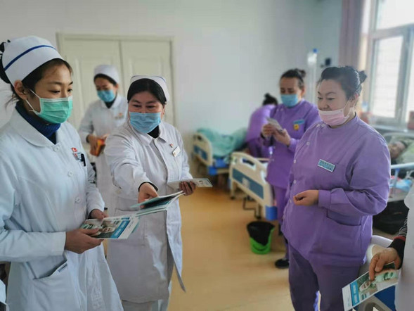 我院压疮小组成员为养老院护理人员发放健康宣传手册