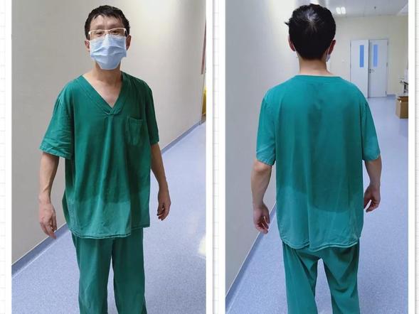 医生杨磊刚刚从ICU出来,脱下隔离服后的他已满身湿透。