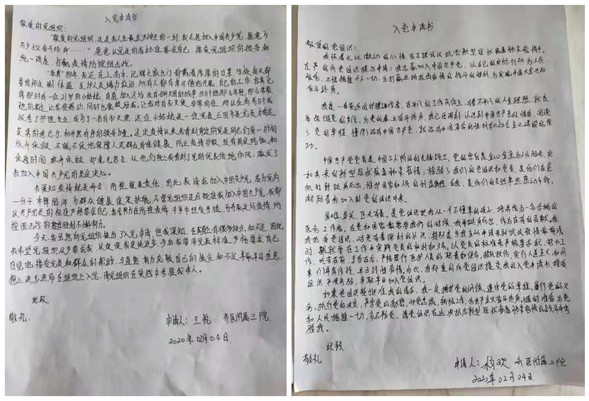 护士杨欢和丁明玉向党组织递交了入党申请书