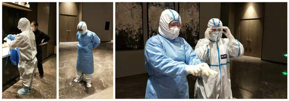 2月5日晚8点,队员们都没有休息,据了解,医疗队队员们为了保证每位队员掌握穿脱防护服的步骤及要点,队员们按要求逐一演练、相互指导,确保每个步骤做到位,最大限度保护医护人员免受感染。