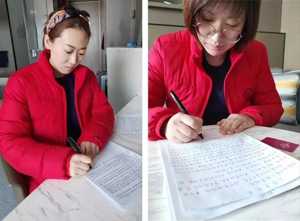 护士王悦(左图)和张子英(右图)在撰写入党申请书