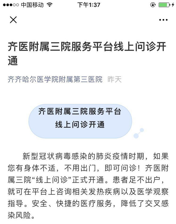 开通医院服务平台的“线上问诊”网络平台